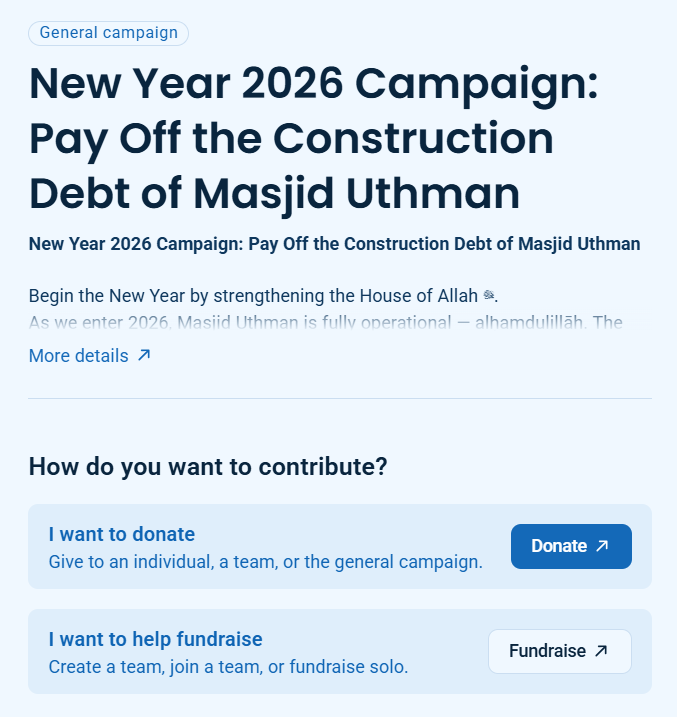 Help raise $1,000 for Masjid Uthman’s construction debt and be entered to win an Umrah this Ramadan
