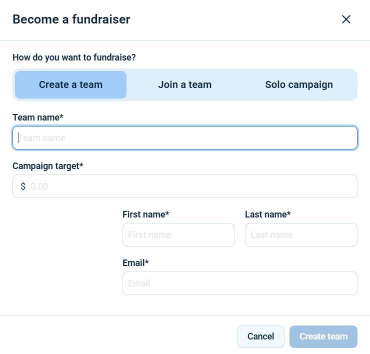 Another pop-up will open asking for your fundraiser details.